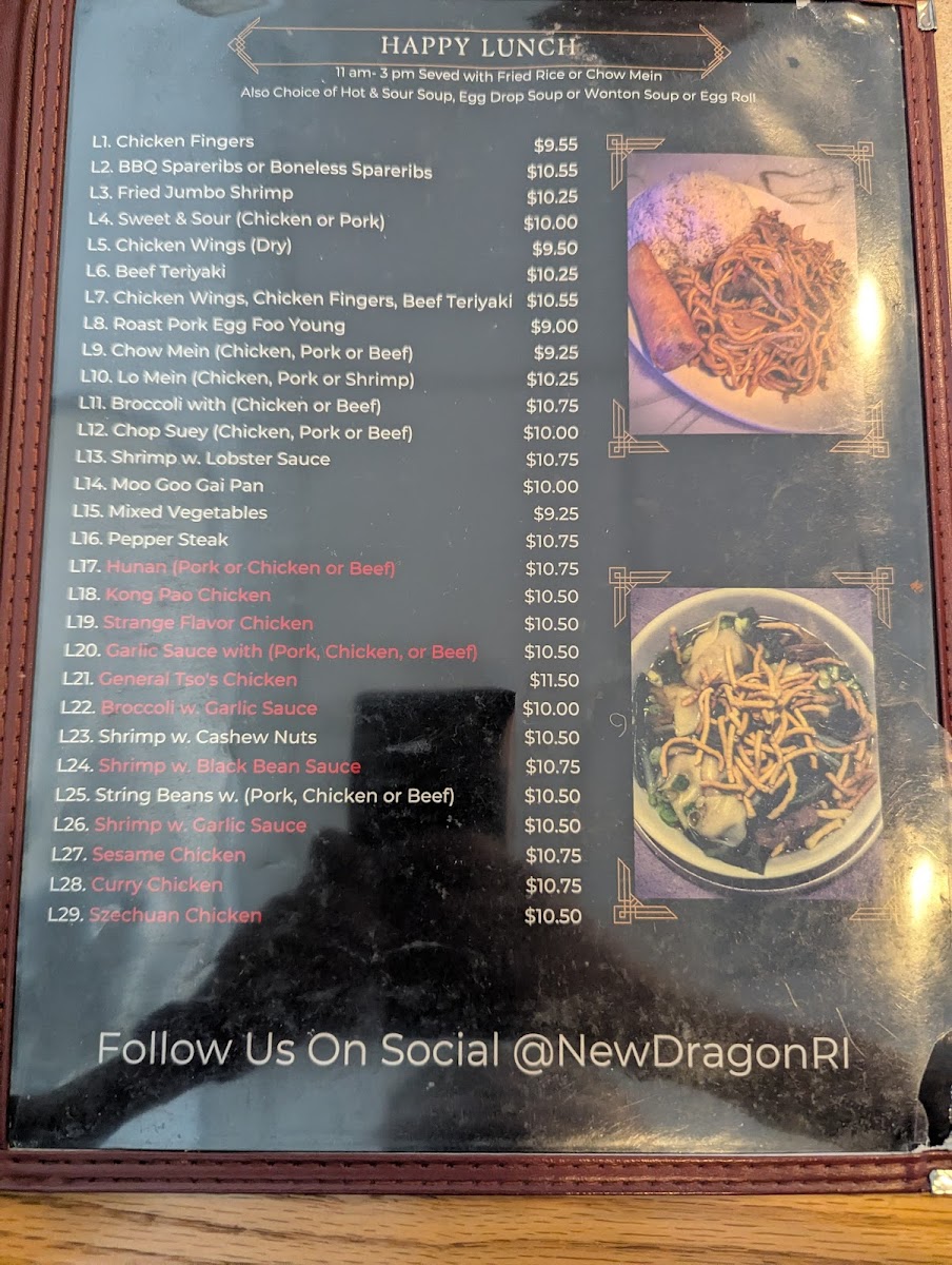 If you're looking for a place that brings together fresh, flavorful dishes with a relaxed atmosphere, then New Dragon Menu is the spot for you. Nestled at 80 Point Judith Rd in Narragansett, this cozy eatery offers a variety of delicious options perfect for any occasion. Whether you’re craving classic Chinese comfort food or something with a twist, you’ll find plenty to explore here. From savory appetizers to flavorful entrees, every dish is prepared with care, using the finest ingredients. Whether you're visiting for a quick bite or enjoying a leisurely meal, New Dragon's menu promises a delightful dining experience that’s both satisfying and delicious.
